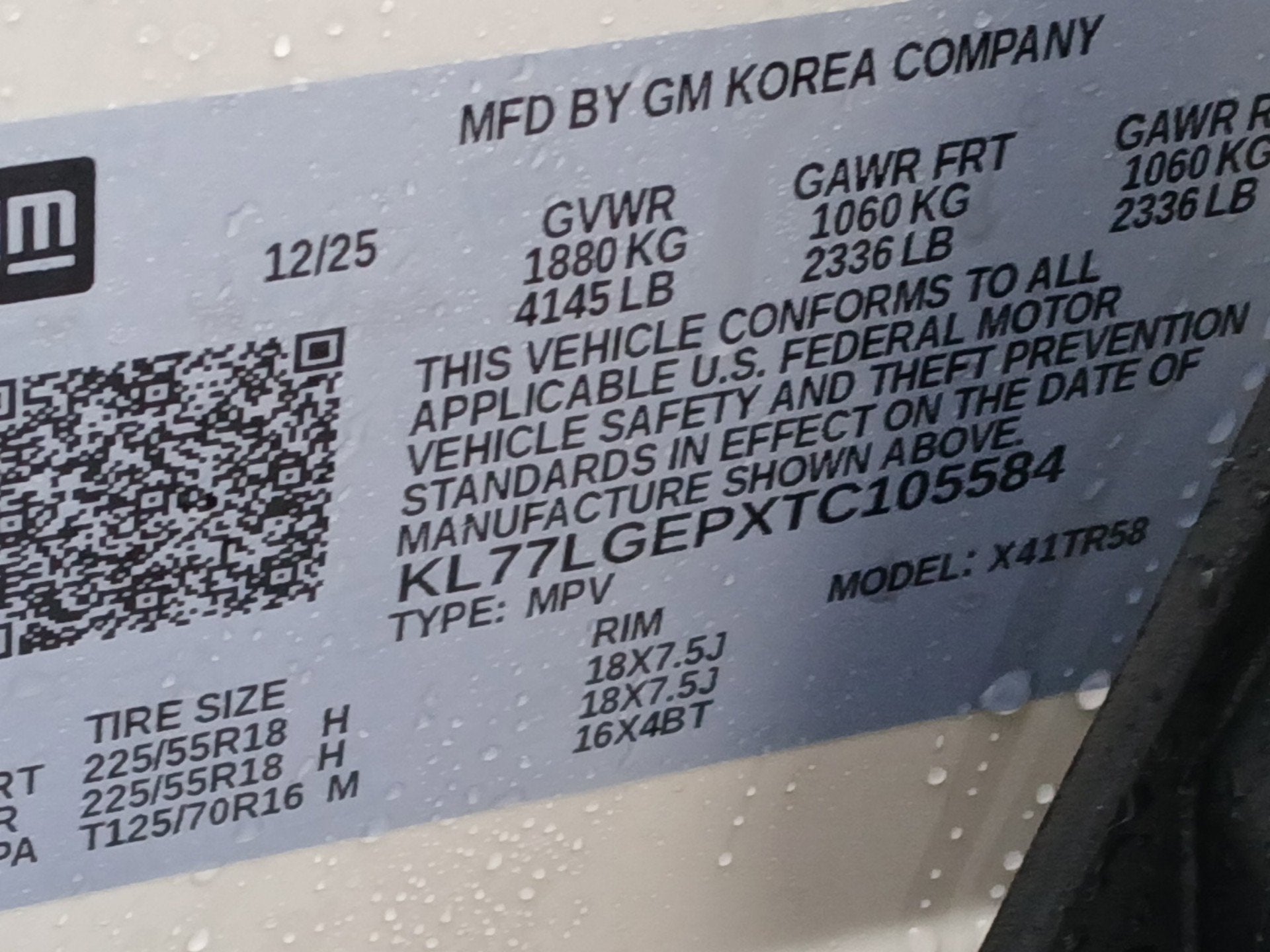- Tires, 225/55R18 all-season, blackwall